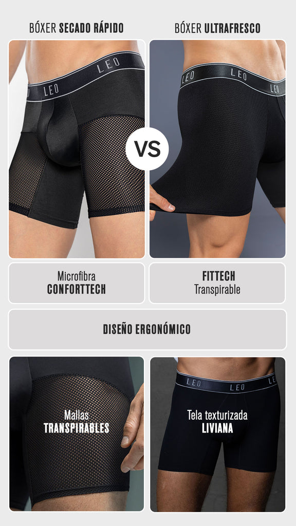 Si buscas calzoncillos para hombre, ¡no busques más! Leo ofrece diseños de alta tecnología para el hombre moderno, elaborados con nuestra tecnología de tela de vanguardia diseñada para brindar comodidad. Leo by Leonisa ofrece calzoncillos para hombres que están diseñados ergonómicamente para brindar soporte y comodidad suprema. Nuestros calzoncillos de ropa interior para hombre ofrecen un ajuste perfecto, sin molestias, sin excavaciones, lo que permite una total libertad de movimiento. Cada pieza es lo suficientemente cómoda para usarla todo el día, todos los días e incluso para dormir. Muchas de ellas están hechas de telas transpirables ultraligeras que absorben la humedad y están diseñadas para sentirse como si no llevaras nada puesto. A todo el mundo le encanta estar cómodo, y no importa si está sentado en casa, trotando, sentado en un escritorio o incluso dando un largo viaje en coche, lo tenemos cubierto. Nuestras telas aireadas de la firma te hacen sentir increíble a lo largo de tu vida diaria o incluso en tus actividades deportivas.