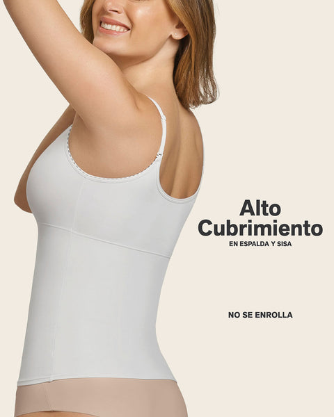 - Estiliza tu torso gracias a su poder doble capa: tela lisa + PowerSlim®.