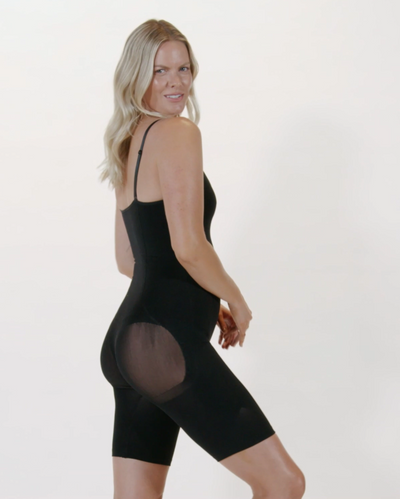 - Faja body elaborada con tecnología SkinFuse® sin costuras: invisible bajo tu ropa.