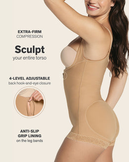 - An extra-firm compression body shaper made of our PowerSlim® firm compression fabric to sculpt torso, thighs, and upper calves.